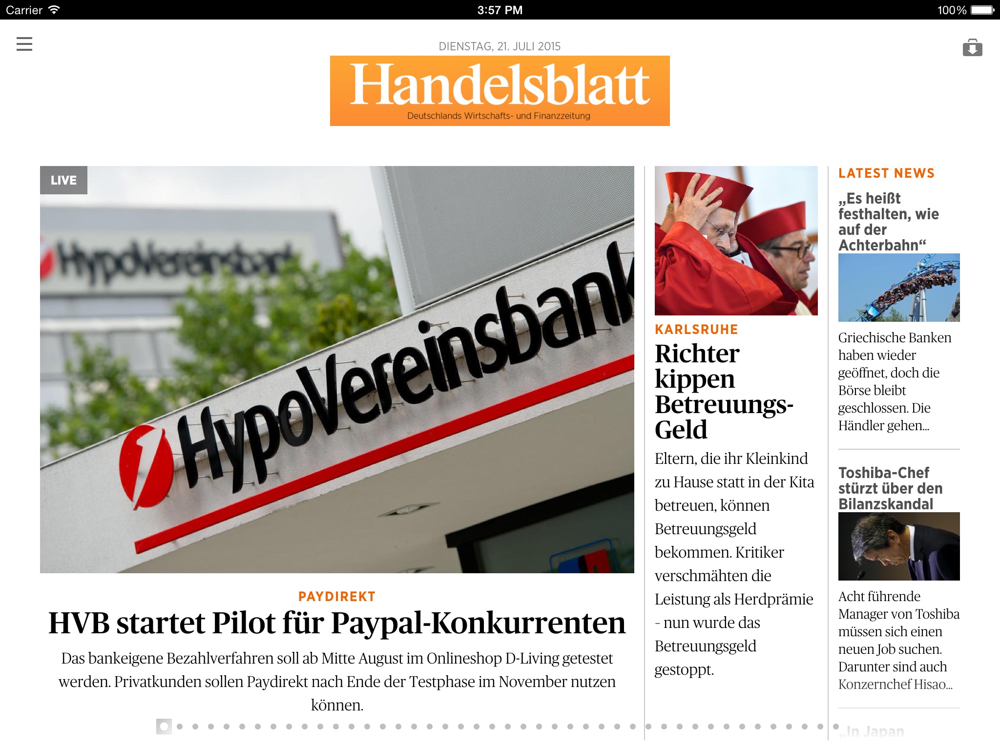 - Handelsblatt iPhone was "App Store App of the Year 2014" in the category Newspapers